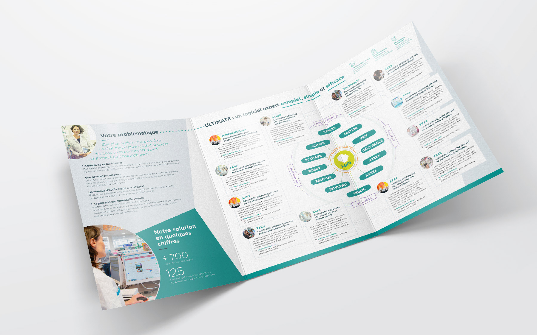 Plaquette de présentation pour la nouvelle offre d'un éditeur de logiciels pour officines.